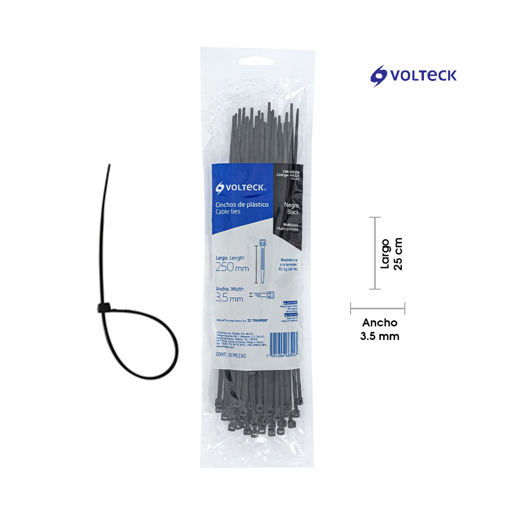 ABRAZADERA PLASTICA 250X3.5 NEGRO 50PCS