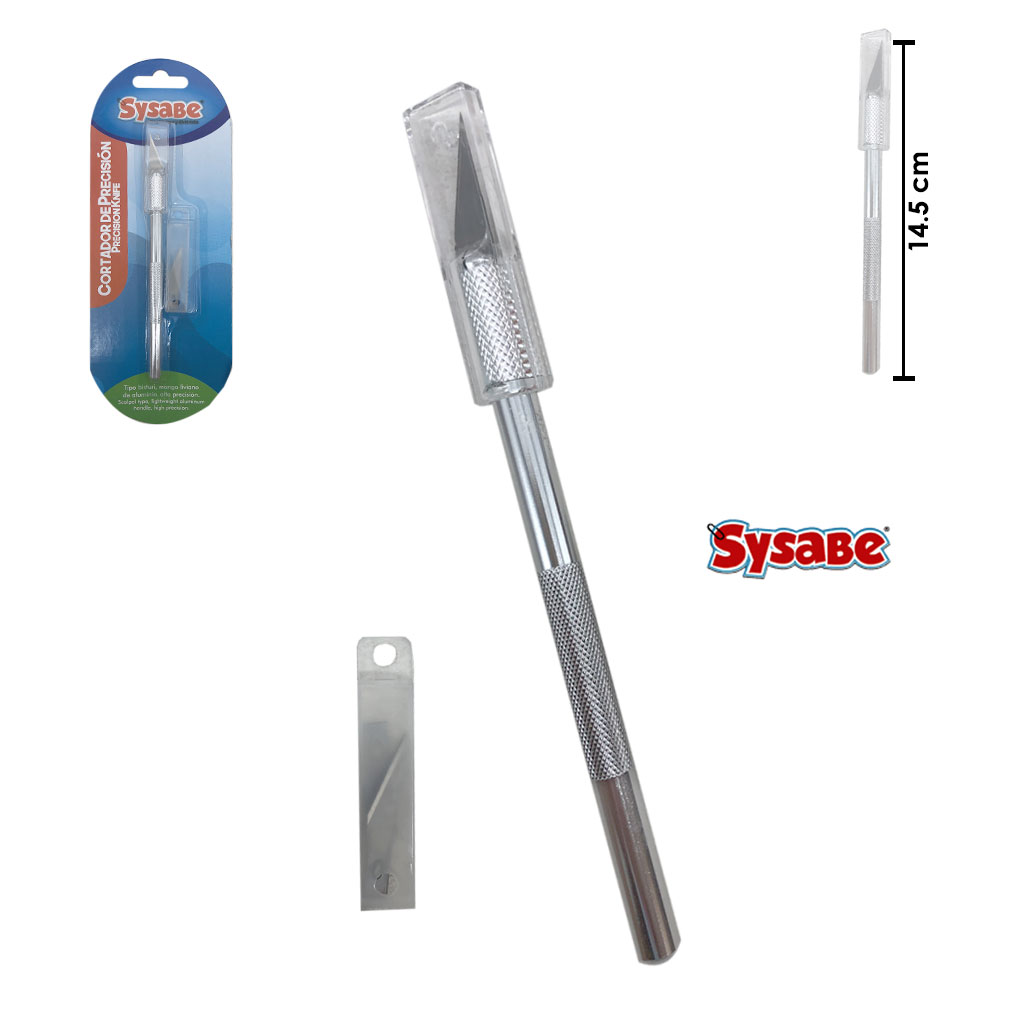 CUCHILLA EXACTO TIPO BISTURI MANGO DE ALUMINIO C/REPUESTOS SYSABE